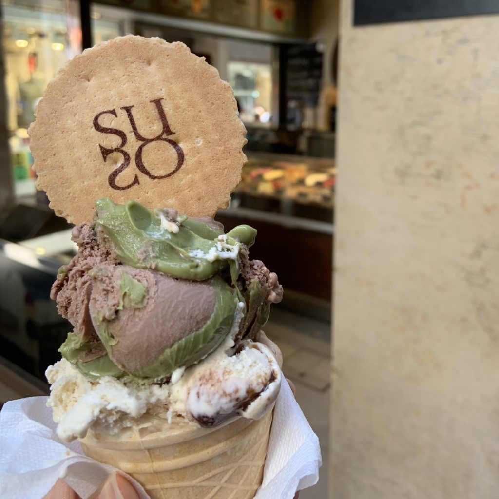 ジェラート屋さんはたくさんあれど、SUSOはディナーのあとの時間はいつも混んでいて行列ができるほどです。香取慎吾さんが以前にロケで訪れたそう。ピスタチオの味が濃厚で美味しかった〜!いつも人気なのも納得。夏は特に溶けやすいので、一気に食べましょう。